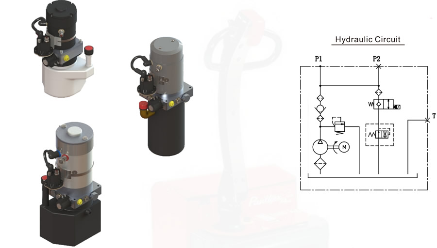 此動(dòng)力單元專為全電動(dòng)托盤車所設(shè)計(jì)。它們具有用于升高保持及下降功能,通常用于單作用缸。內(nèi)置壓力補(bǔ)償節(jié)流閥用于控制下降速度。這些單元通常是垂直安裝的,具有從1.2KW-3.0KW不同的電機(jī)功率可選擇有鐵制及塑料油箱供選用。