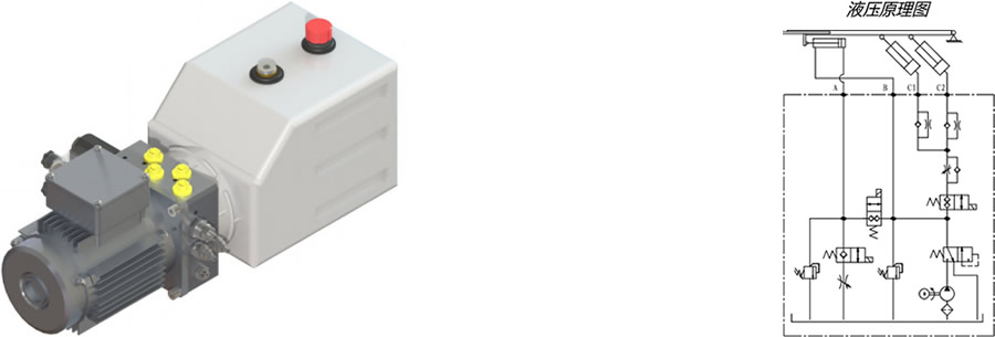 此動(dòng)力單元應(yīng)用于帶唇板伸縮式的倉庫登車橋。